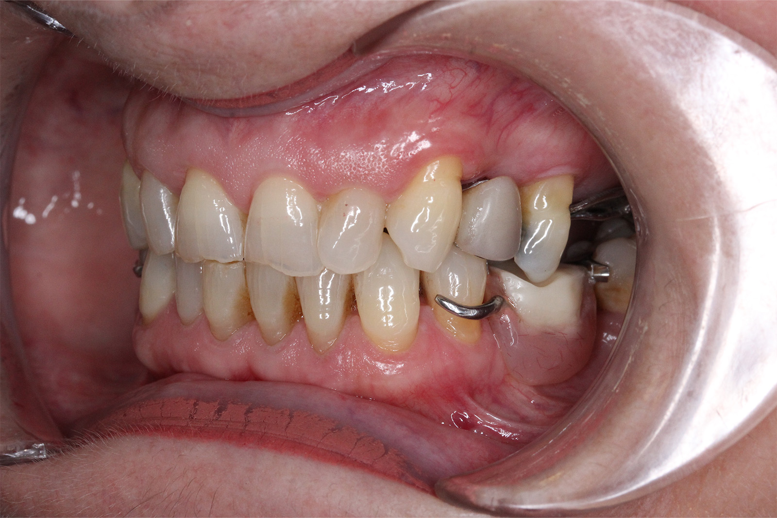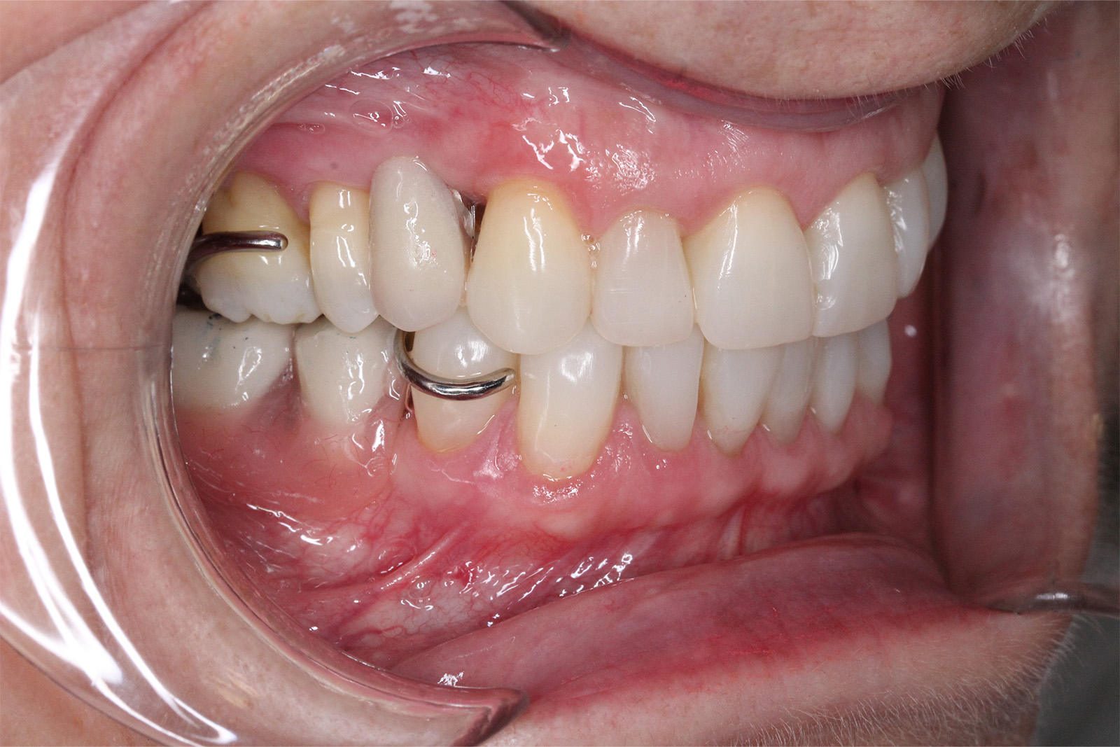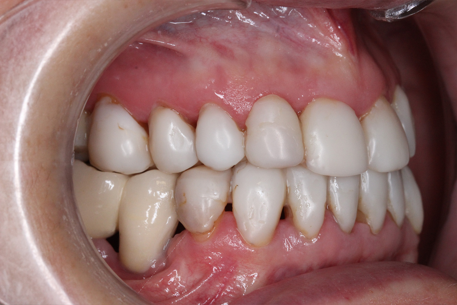 Se colocaron coronas sobre los dientes 11, 12, 21 y 22, fundamentales en la zona estética, logrando un aspecto natural y perfectamente integrado. Completamos la rehabilitación con inyección de composite en los incisivos inferiores, mejorando su alineación y volumen, y colocamos una prótesis esquelética superior e inferior, que devolvió a Alfonsa la capacidad de masticar con comodidad y confianza.