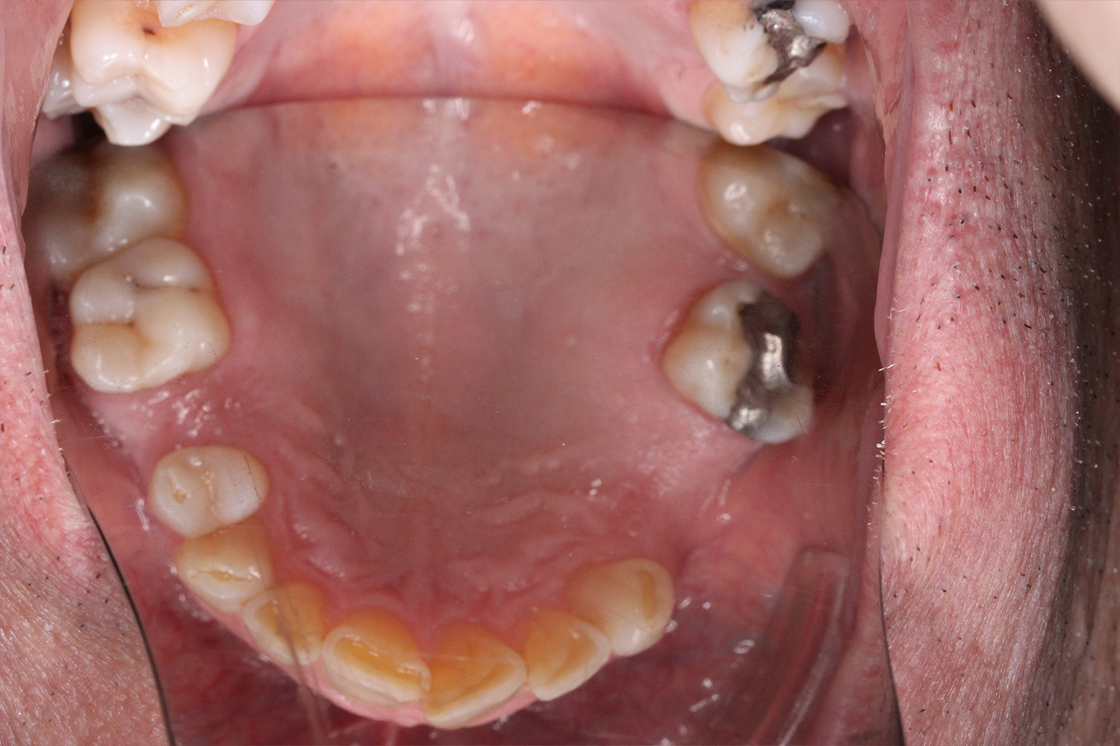 Cuando llegó a la clínica, ya había recibido un tratamiento a los 5 años con un aparato removible en el paladar, pero persistían problemas como la mordida cruzada, una posición baja de la lengua en reposo, y desviación mandibular al morder. Estas condiciones no solo afectan a la estética dental, sino también a la articulación, al habla y al desarrollo óseo.